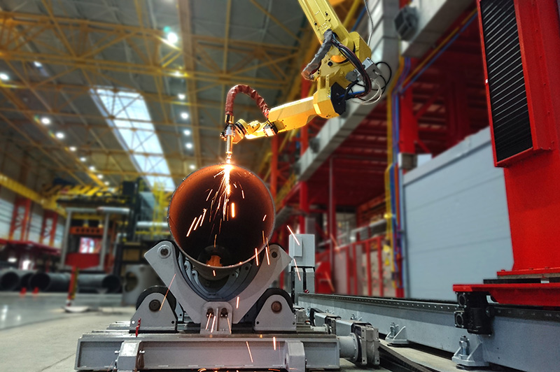 Промышленный робот в составе робототехнического комплекса обеспечивает газовую резку габаритных труб длиной до 12 метров в полностью автоматическом режиме, включая резку отверстий любых форм и размеров, а также седловидных отверстий. Кроме этого, комплекс позволяет торцевать трубы, снимать фаску, вырезать отверстия в пуклях.