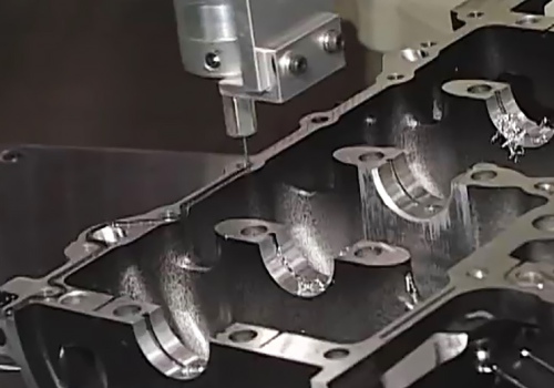 Промышленный робот в составе робототехнического комплекса осуществляется автоматическое распределение герметика на поверхность картера двигателя.