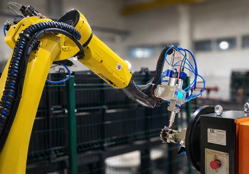 Промышленный робот в составе робототехнического комплекса обеспечивает автоматическую лазерную сварку ступиц.