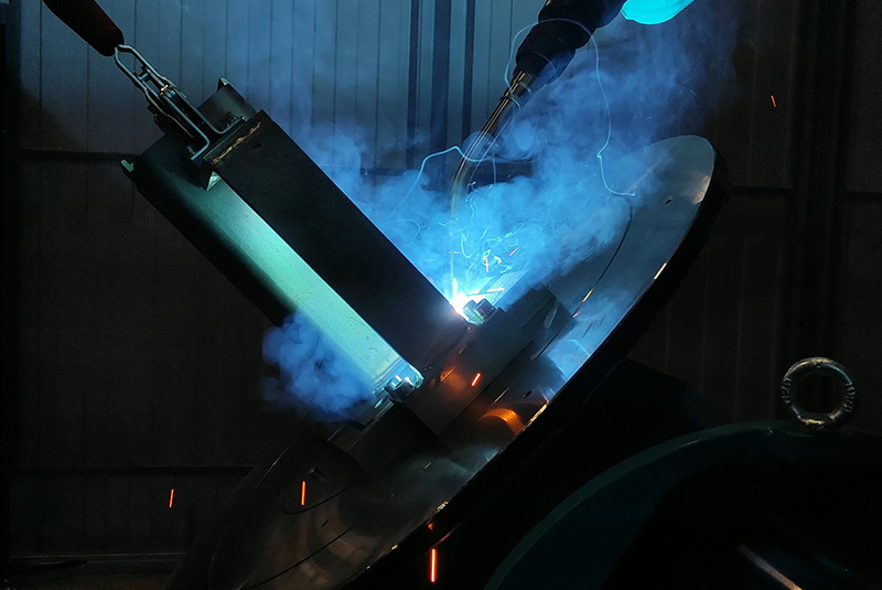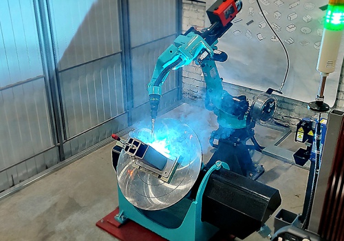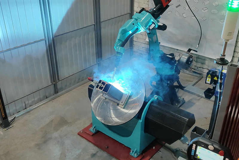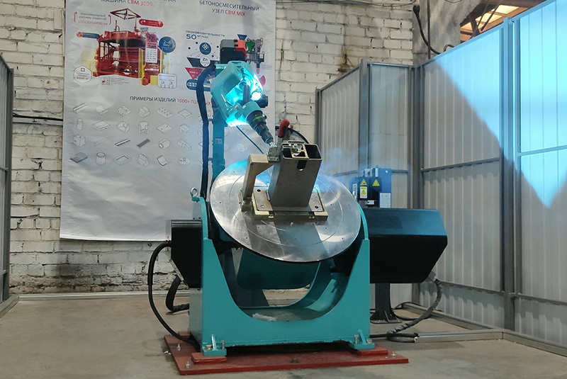 Редуктор каждой оси позиционера приводится в движение серводвигателем робота. Данный функционал обеспечивает управляемое вращение изделий в процессе сварки по двум осям и позволяет располагать сварные соединения в технологически правильном положении, включая сварку «в лодочку».