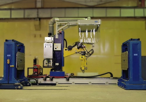Промышленный робот в составе робототехнического комплекса обеспечивает автоматическую сварку габаритных изделий различных типоразмеров.