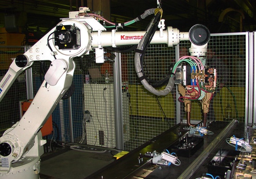 Сварочный робот оснащен серво-клещами Obara. Сервопривод обеспечивает управление и контроль силы сжатия клещей, что значительно расширяет технологический возможности сварки и обеспечивает качественные соединений.